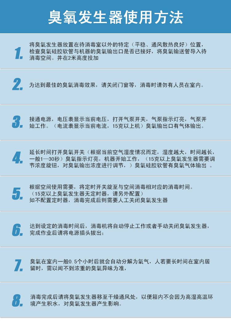 7:根據工作環境、使用要求,正確選用臭氧消毒機。
